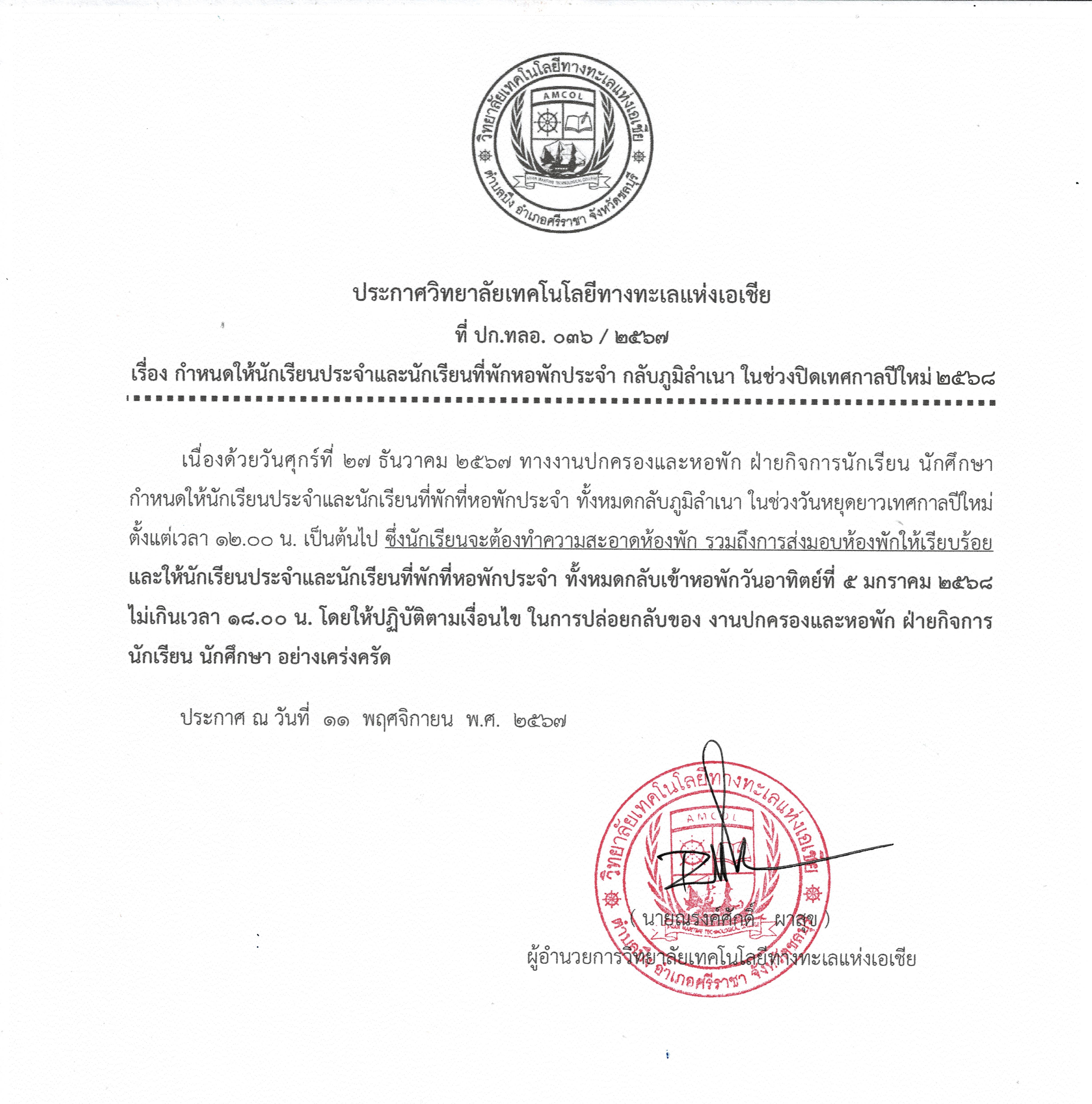 ประกาศข่าวสาร กำหนดการต่าง ๆ